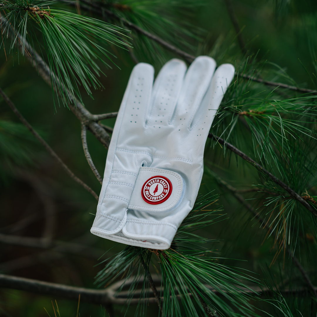 Featuring an all-white gloves with a pop of color on our 'Pine Patch' logo and 'North Coast Golf Co' wrist logo. Inspired by cherries, a Northern Michigan staple.